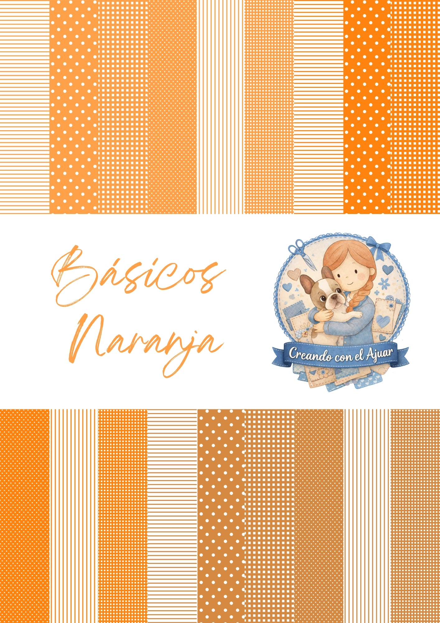 3 tonos de naranja en 7 estampados cada uno.